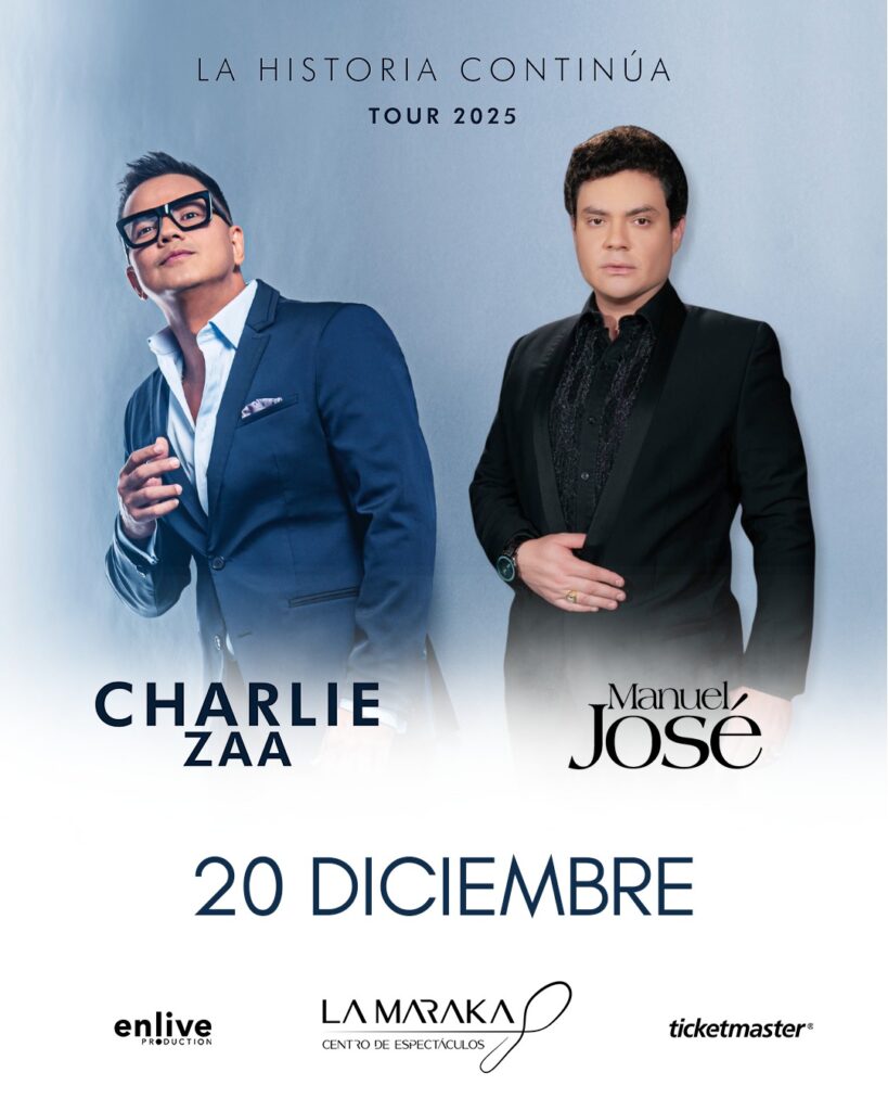 En una ciudad acostumbrada a celebrar la música con devoción, el próximo sábado 20 de diciembre, el Centro de Espectáculos La Maraka abrirá sus puertas para recibir un encuentro que promete tocar las fibras más hondas del alma. En un mismo escenario, dos voces emblemáticas del romanticismo latinoamericano —Charlie Zaa y Manuel José— unirán su arte para ofrecer una velada donde la nostalgia se vuelve presente y el amor recobra su forma más pura: la canción. Los boletos están a la venta en el Sistema Ticetmaster y en taquillas de La Maraka.